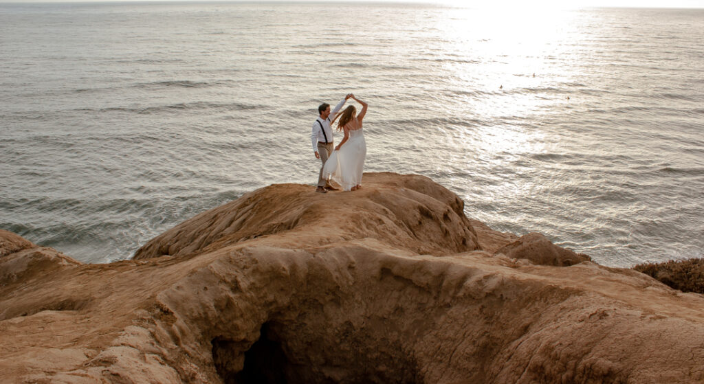 Swayzie & Tony Beachy couple climbs the cliffs at sunset for their intimate vow recital| Sunset Cliffs, San Diego, CA
